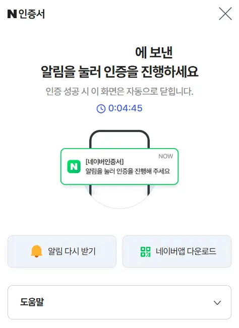 – 모바일 알림 다시 받기 버튼 클릭
