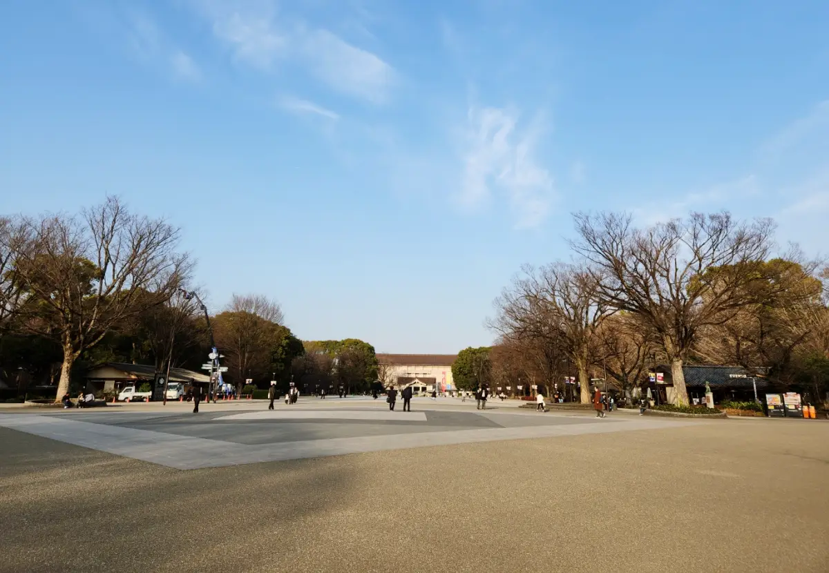 공원은 우에노역에서 내려 공원 입구 쪽으로 나오면 빠르게 도착할 수 있다. 인근의 아메요코 상점가에 들렀다가 오는 것도 좋을 텐데, 공원 입구 계단을 올라 산책로를 조금 걸으면 사진의 넓은 공간으로 올 수 있다.