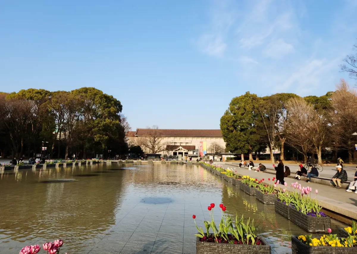 사진에서 왼쪽은 우에노 동물원과 도쿄도 미술관, 정면은 도쿄 국립 박물관, 오른쪽은 국립과학박물관과 서양미술관이 있는 점도 참고하자.