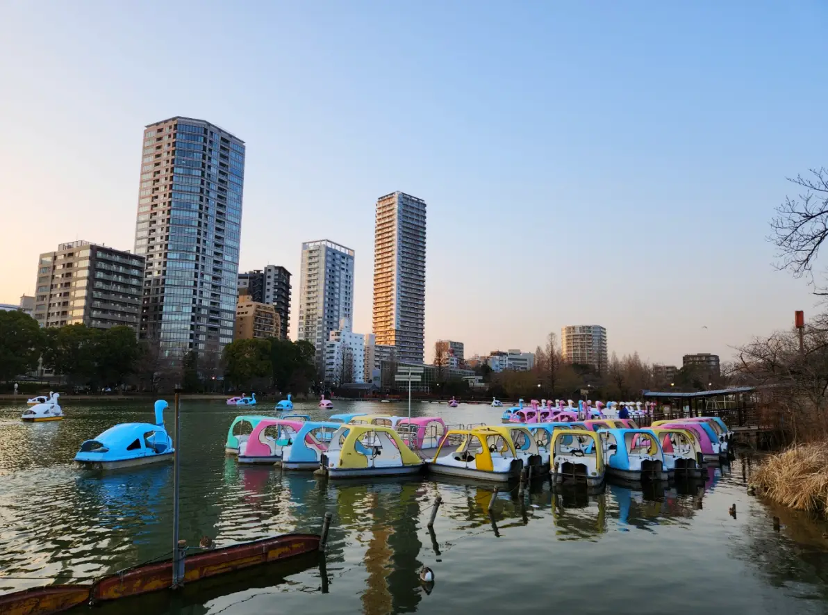 동조궁을 관람한 뒤 길을 따라 내려와 공원을 나오면 도로 너머로 시노바즈노이케(不忍池) 호수가 나온다.