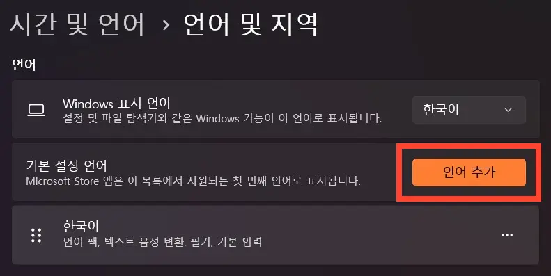 윈도우 바탕화면에서 마우스 우클릭 – 개인 설정 – 왼쪽 탭에서 ‘시간 및 언어’ > ‘언어 및 지역’을 선택하면 위의 화면이 나오는데 ‘언어 추가’ 버튼을 누르고 일본어를 검색하자.