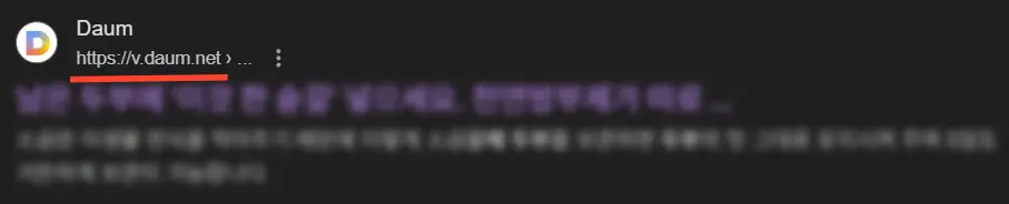 참고로 구글에 노출되는 다음채널 글은 다음 예전 로고와 v.daum.net 도메인 주소, 글 제목과 내용을 볼 수 있다.