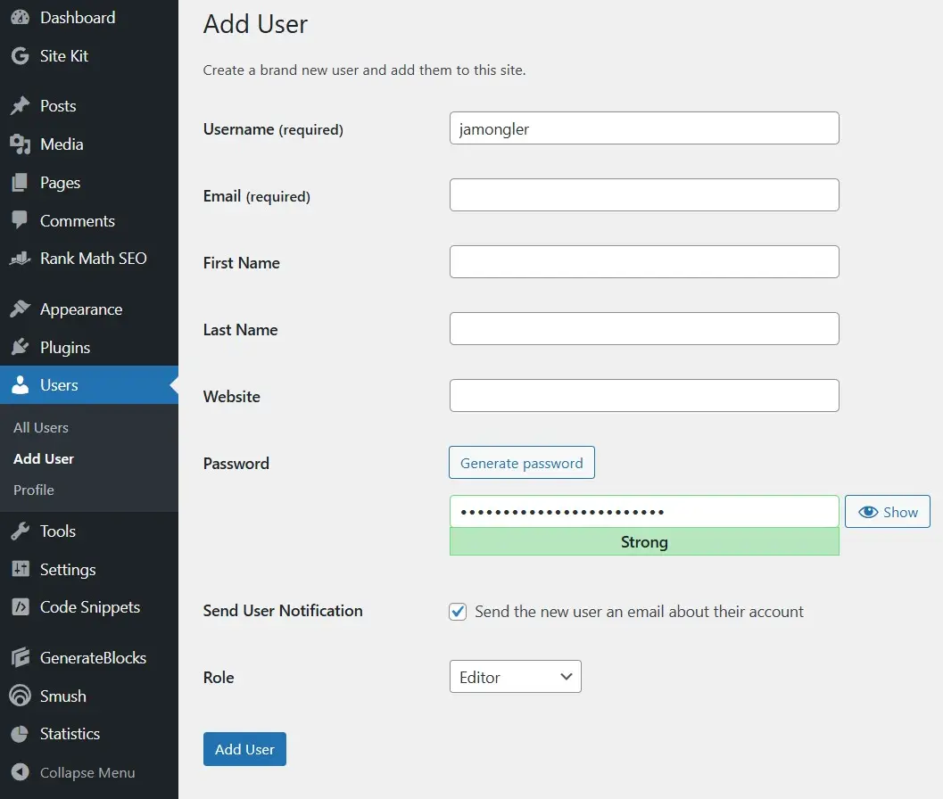 워드프레스를 처음 만들면 따로 설정하지 않는 이상, 블로그에 로그인하는 아이디가 계정이 되는 구조이다. 만약 로그인 아이디가 블로그 닉네임과 다르거나, 그냥 노출하고 싶지 않은 등의 이유가 있다면 신규 사용자를 추가해서 기존 닉네임을 옮겨올 수 있다.