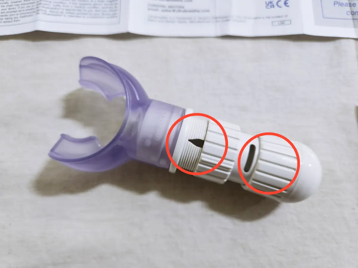 만약 위처럼 공기구멍을 최소한으로 남기고 캡도 꽉 조이면 숨을 뱉을 때 엄청난 압력을 느껴볼 수 있지만, 처음에는 쉽지 않을 것이다. 그래서 자신의 현재 상태에 따라 조금씩 구멍을 좁히면서 훈련하면 무난하고 반복하면 호흡근 강화 효과를 볼 수 있다.