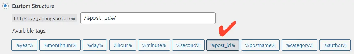먼저 숫자 퍼머링크는 워드프레스 대시보드 – Settings – Permarink 페이지로 와서 Custom Structure와 %post_id%/ 선택을 하고 저장하면 된다. 이렇게 설정한 뒤 작성하는 글에는 https://wordblog.com/1과 같은 식으로 고유한 숫자가 붙는다.