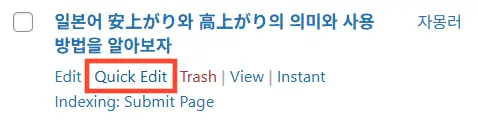 문자를 수정하려면 대시보드 – Posts – All Posts로 와서 해당 글 제목의 Quick Edit 기능을 활용해야 한다.