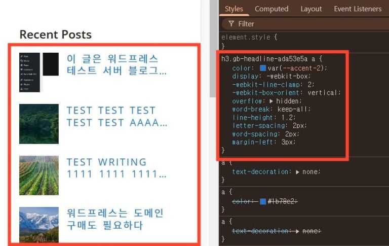 워드프레스 사이드바 글 제목 줄 바꿈 스타일 조절 방법